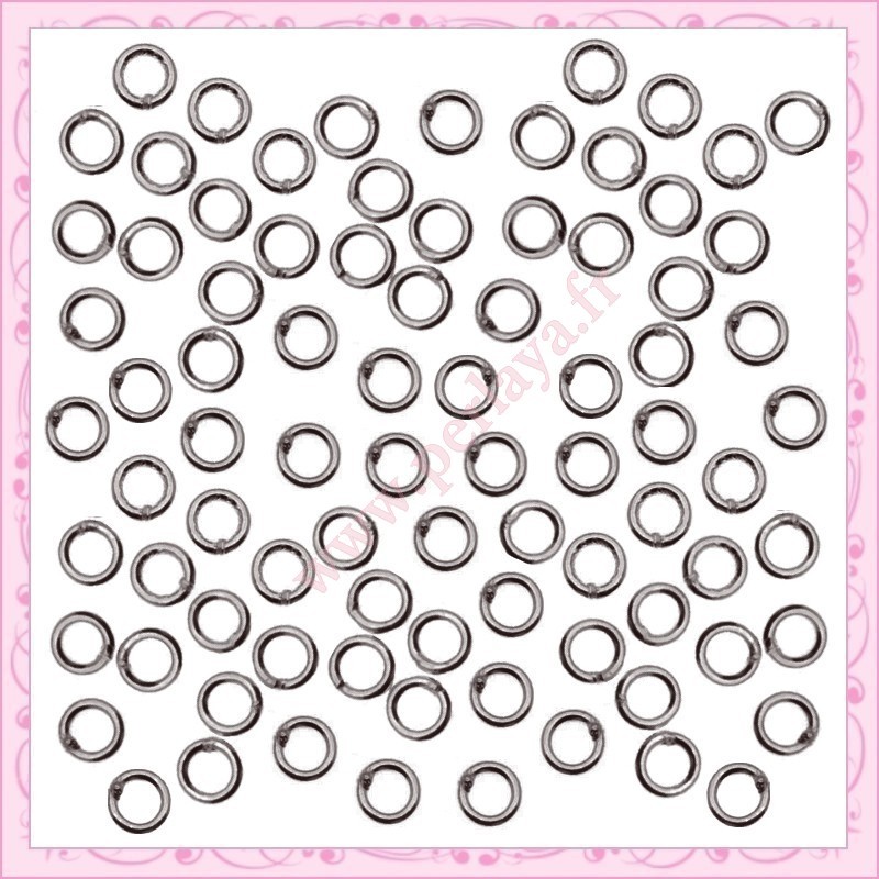 250 anneaux argentés foncé 4mm en métal