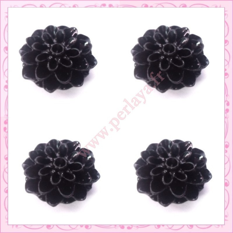10 cabochons en résine fleurs dahlia 16mm noir