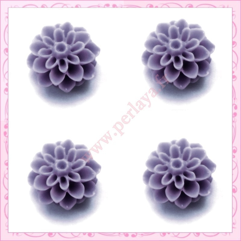 10 cabochons en résine fleur dalhia 16mm gris