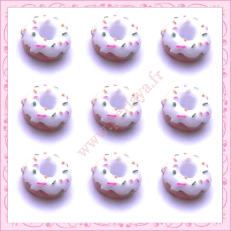 Lot de 3 cabochons en résine en forme de donut à la crème