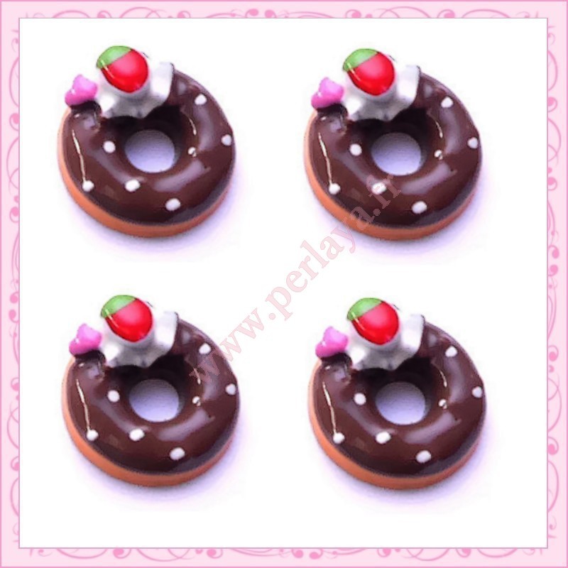 Lot de 3 cabochons en résine en forme de donut à la fraise