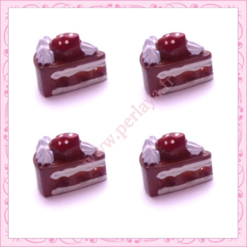 Lot de 3 cabochons en résine part de gâteau au chocolat