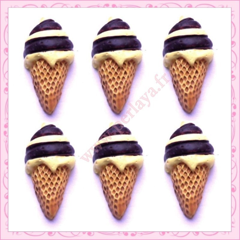 3 cabochons glace vanille chocolat en résine 2,4cm