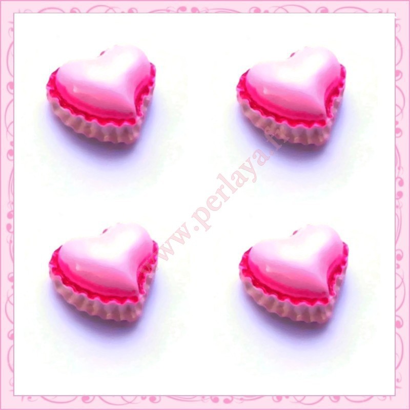 Lot de 3 cabochons en résine en forme de macaron coeur