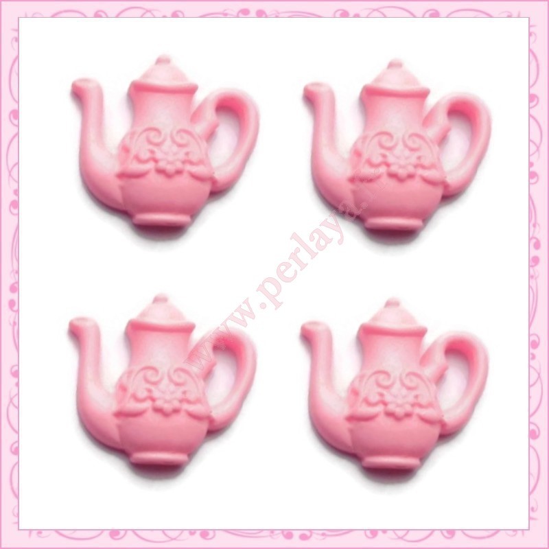 3 cabochons théière rose en résine 2,3cm