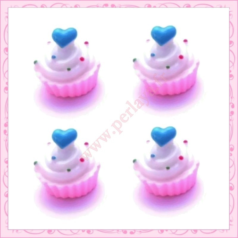 3 cabochons en résine cupcake à la crème 1,6cm
