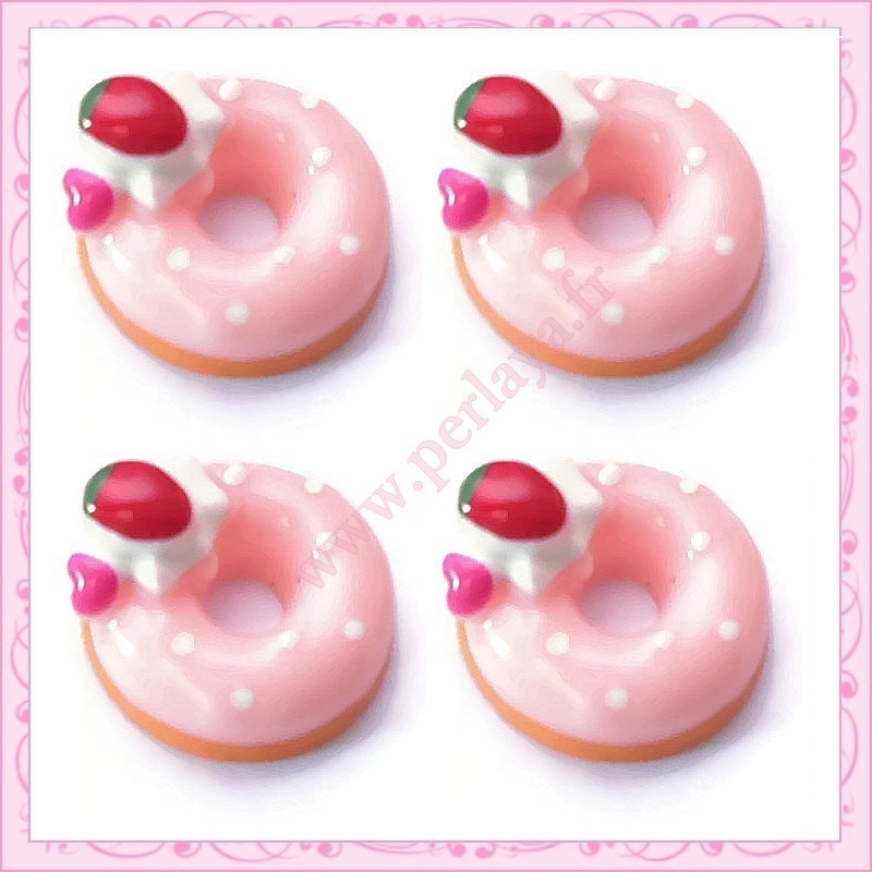 Lot de 3 cabochons en résine en forme de donut à la fraise