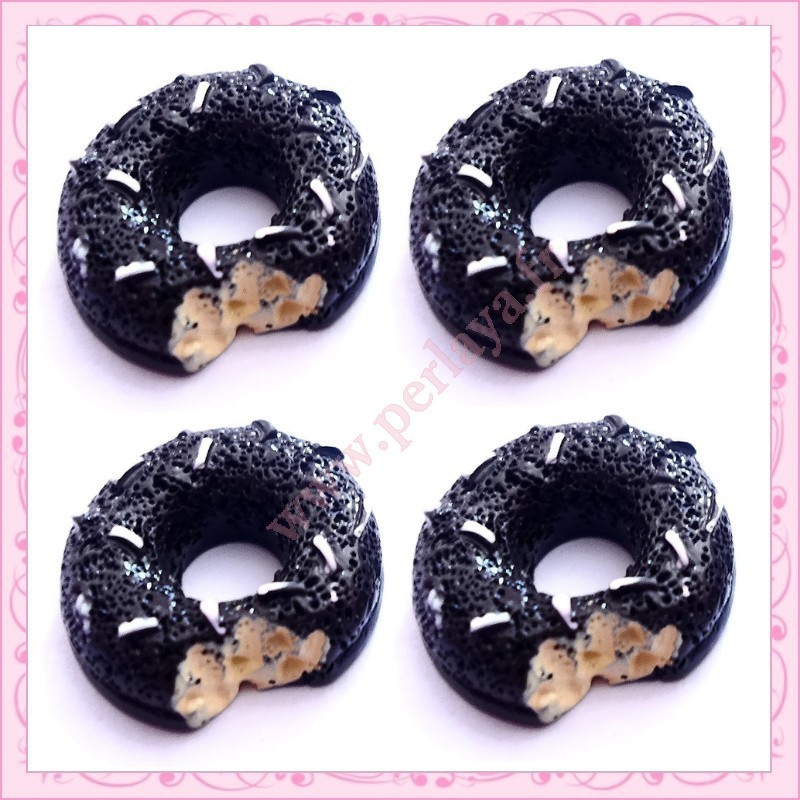 3 cabochons en résine donuts chocolat 1,6cm