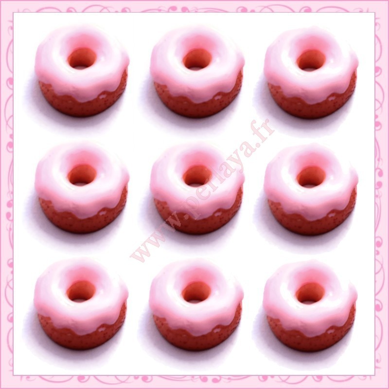 3 cabochons en résine donuts rose 1,4cm