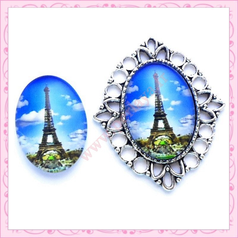 4 cabochons en verre oval 18x25mm Tour Eiffel