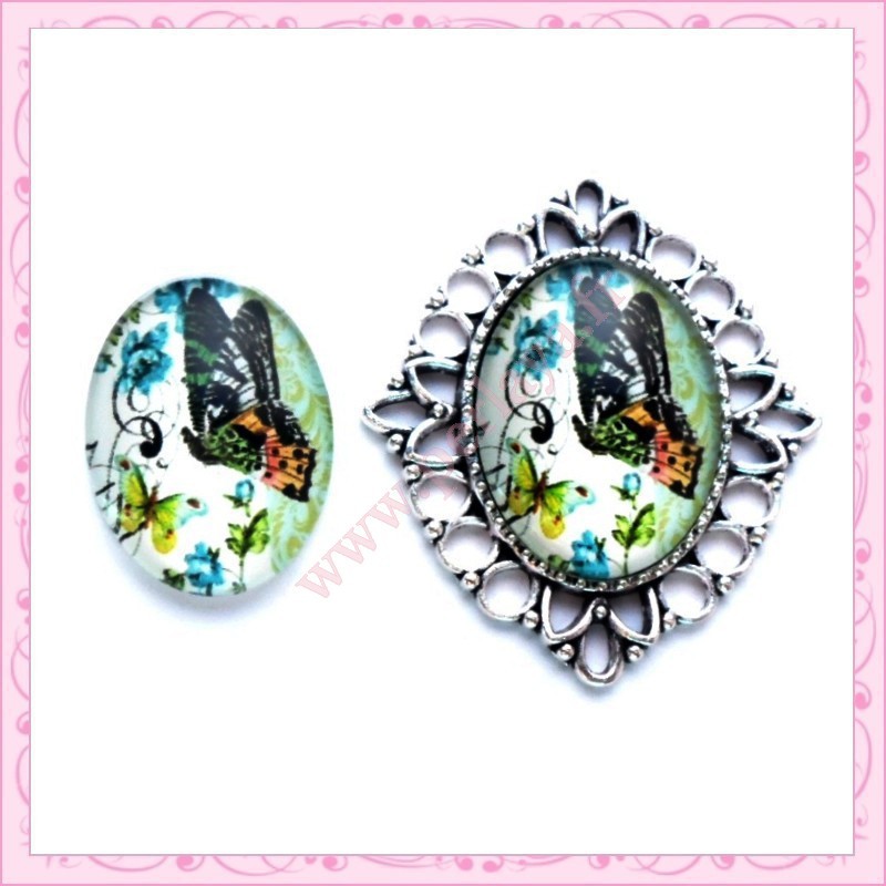 4 cabochons en verre oval 18x25mm papillon