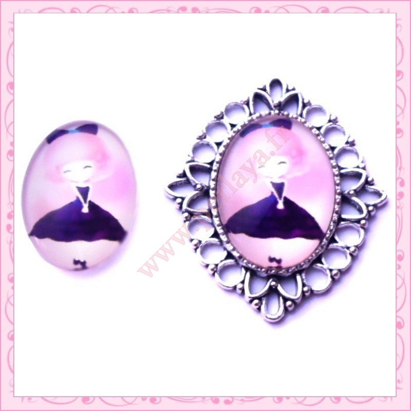 4 cabochons en verre oval 18x25mm Demoiselle chic