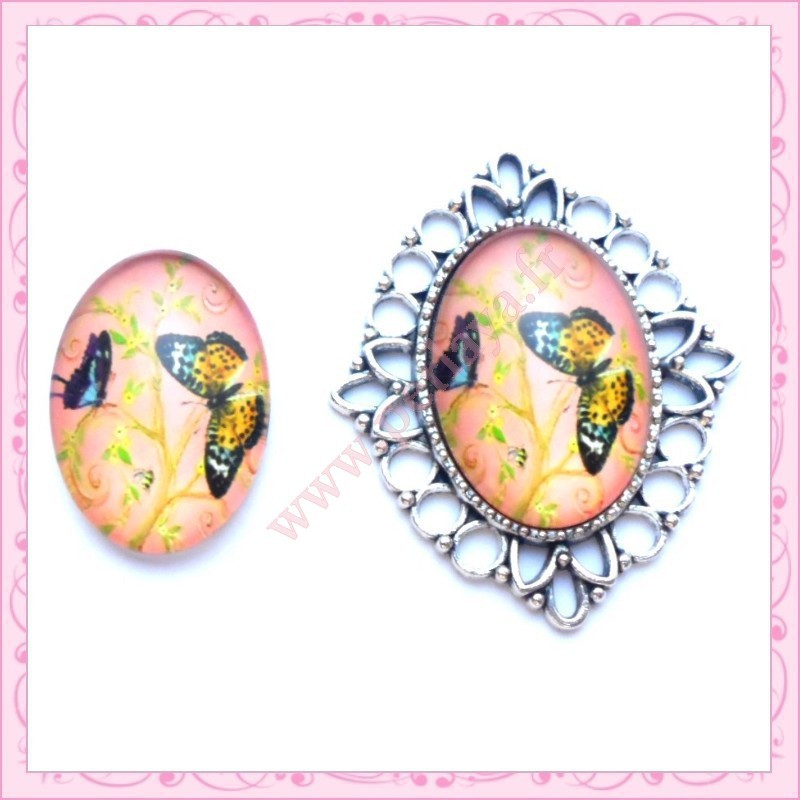 Cabochon en verre oval 18x25mm papillon