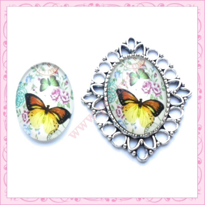 Cabochon en verre oval 18x25mm papillon