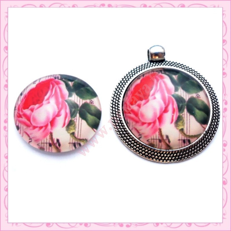 4 cabochons en verre rond 25mm floral