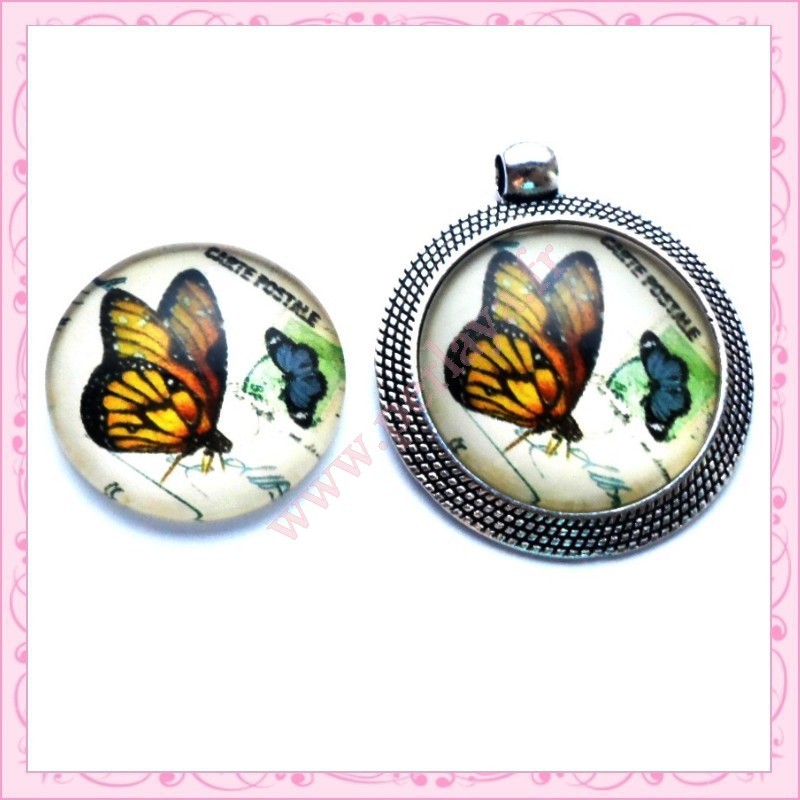 Cabochon en verre rond 25mm papillon