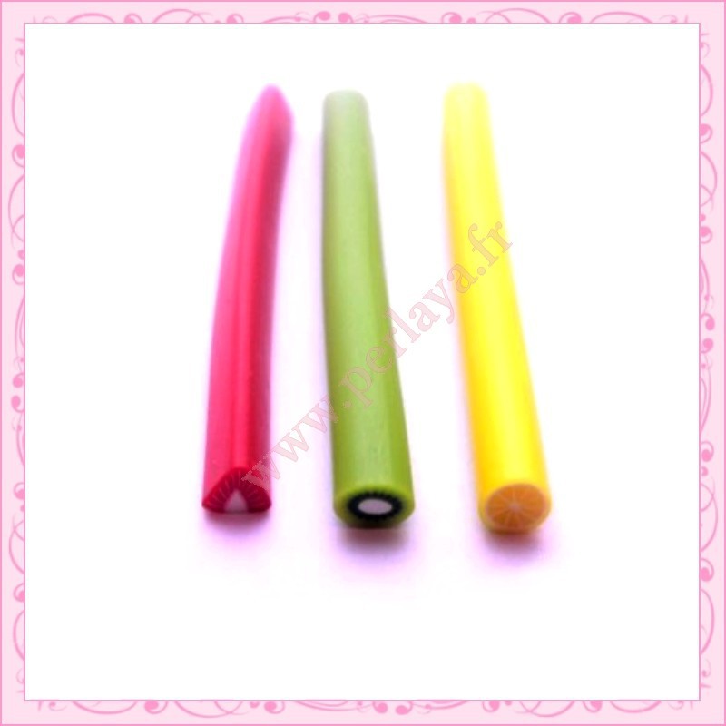 6 canes fimo fruits, fraise, citron, kiwi
