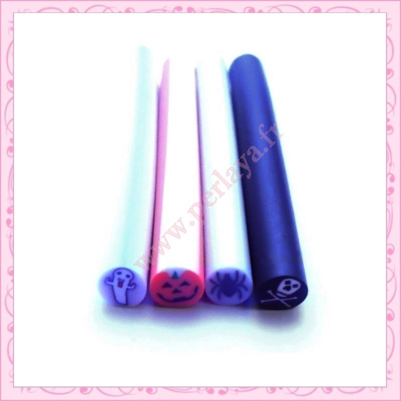 4 canes fimo halloween, fantôme, citrouille, araignée, tête mort