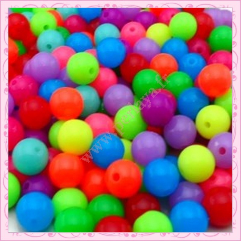 200 perles fluos rondes en acrylique 10mm