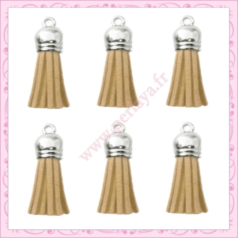 5 pompons 35mm marron beige style daim-suédine calotte argentée