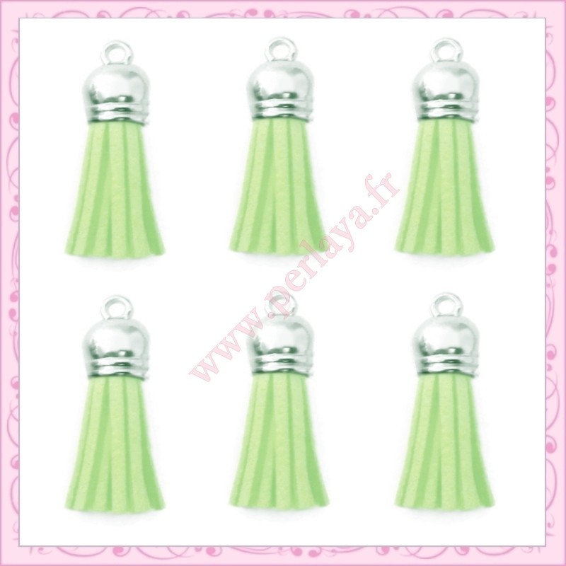 5 pompons 35mm vert pastel style daim-suédine calotte argentée