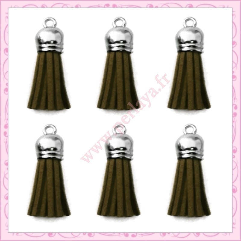 5 pompons 35mm vert kaki style daim-suédine calotte argentée