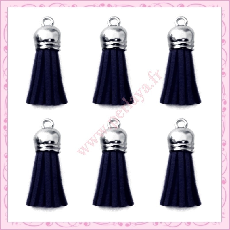 5 pompons 35mm bleu nuit style daim-suédine calotte argentée