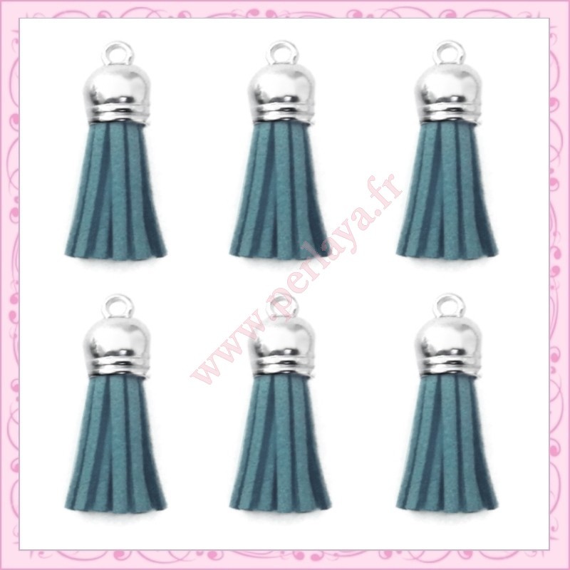 5 pompons 35mm bleu style daim-suédine calotte argentée