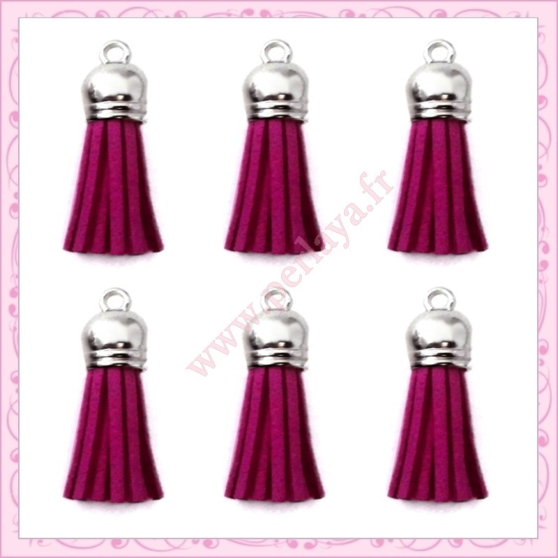 5 pompons 35mm violet prune style daim-suédine calotte argentée