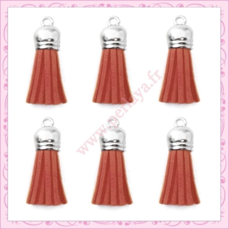 5 pompons 35mm style daim-suédine calotte argentée
