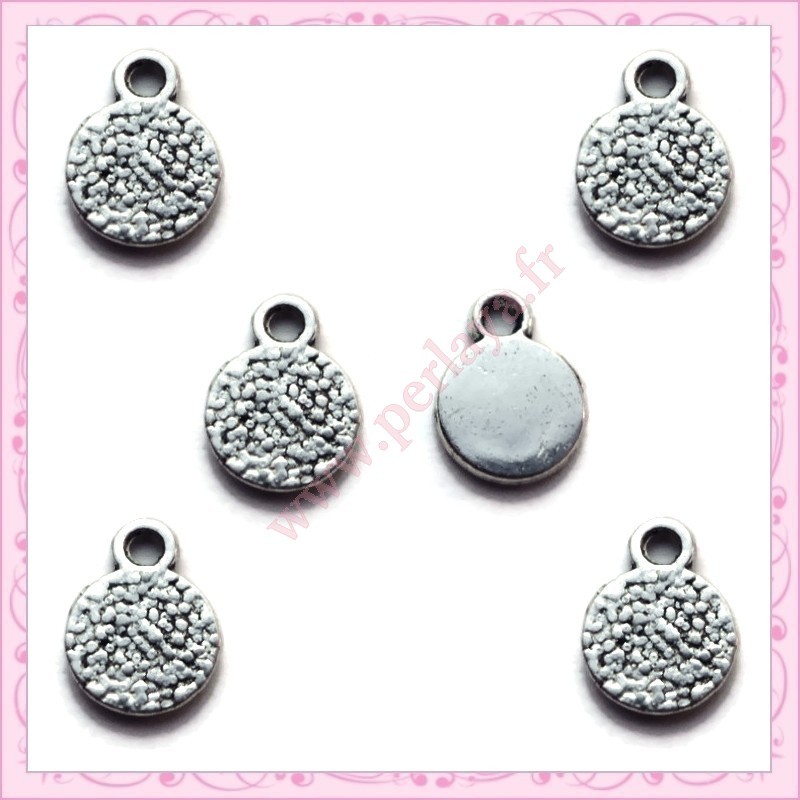 Lot composé de 100 breloques sequins ronds en métal 10mm de couleur argentés