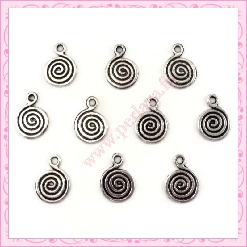 Lot composé de 20 breloques sequins ronds tourbillon en métal 13mm