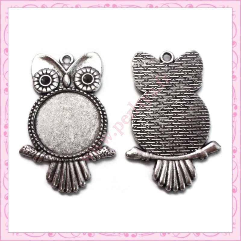 8 supports 20mm cabochon hiboux argentés de 4.5cm