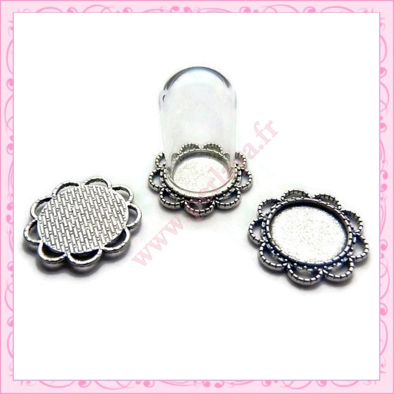 Lot composé de 4 supports pour globe ou cabochon ronds argentés de 18mm en métal
