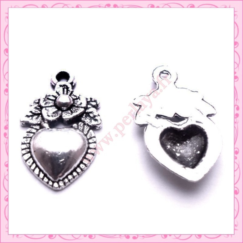 Lot composé de 15 breloques argentées en forme de coeurs 18mm
