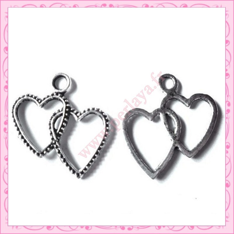 Lot composé de 15 breloques argentées en forme de coeurs entrelacées 23mm