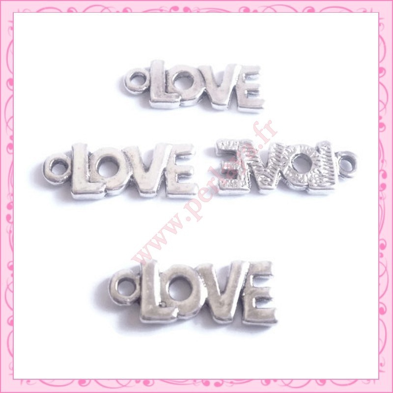 Lot de 15 breloques LOVE en métal argentées