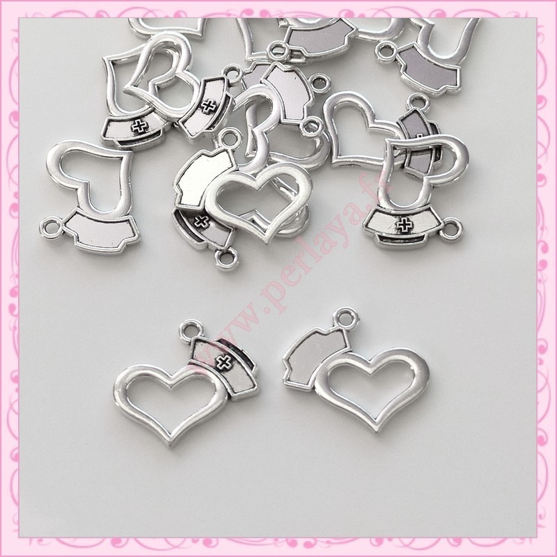 15 breloques coeur infirmière médecin argentées