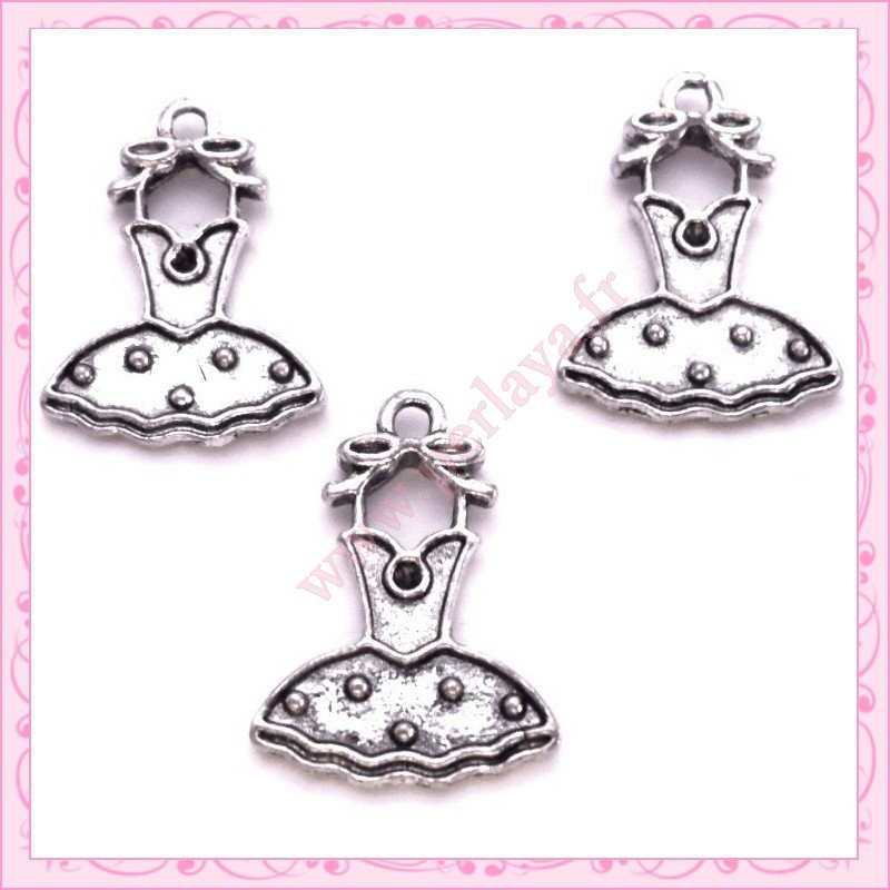 15 breloques robe métal argentées 2.1cm