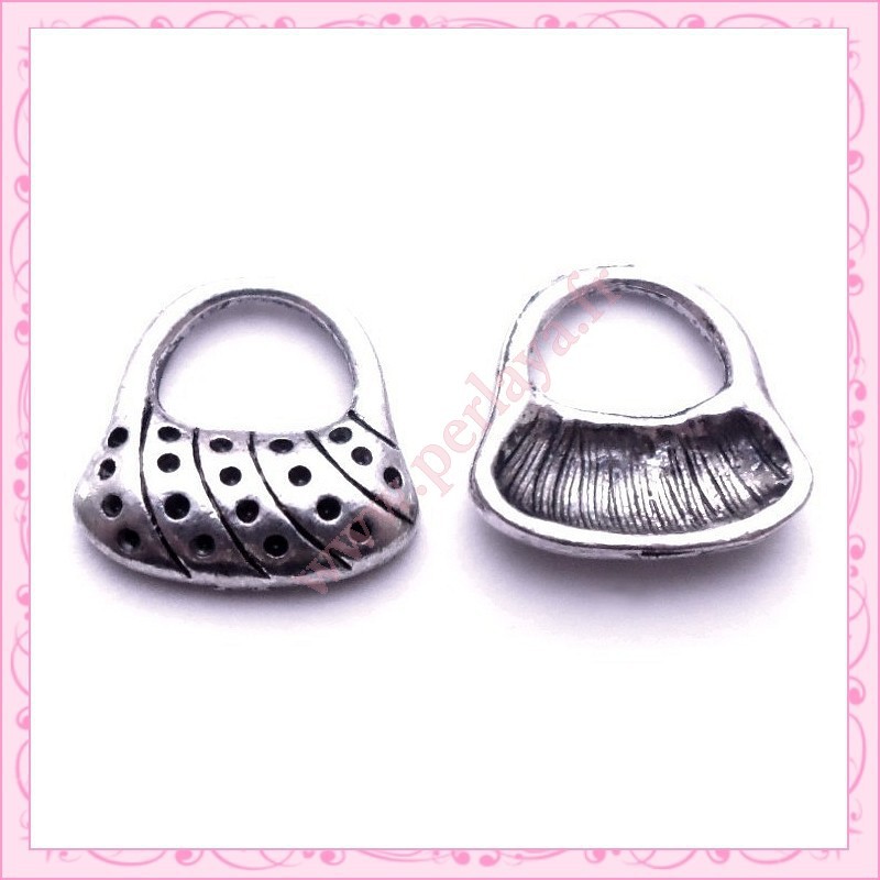 15 breloques sac à main en métal argentées 1.5cm
