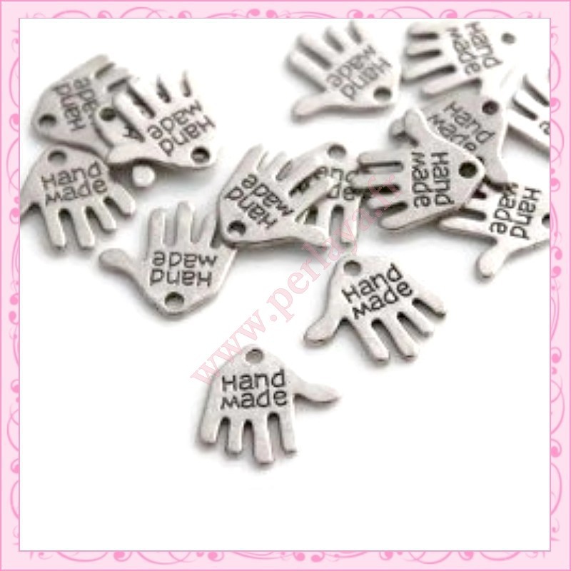 15 breloques mains "hand made" en métal argentées 1.2cm