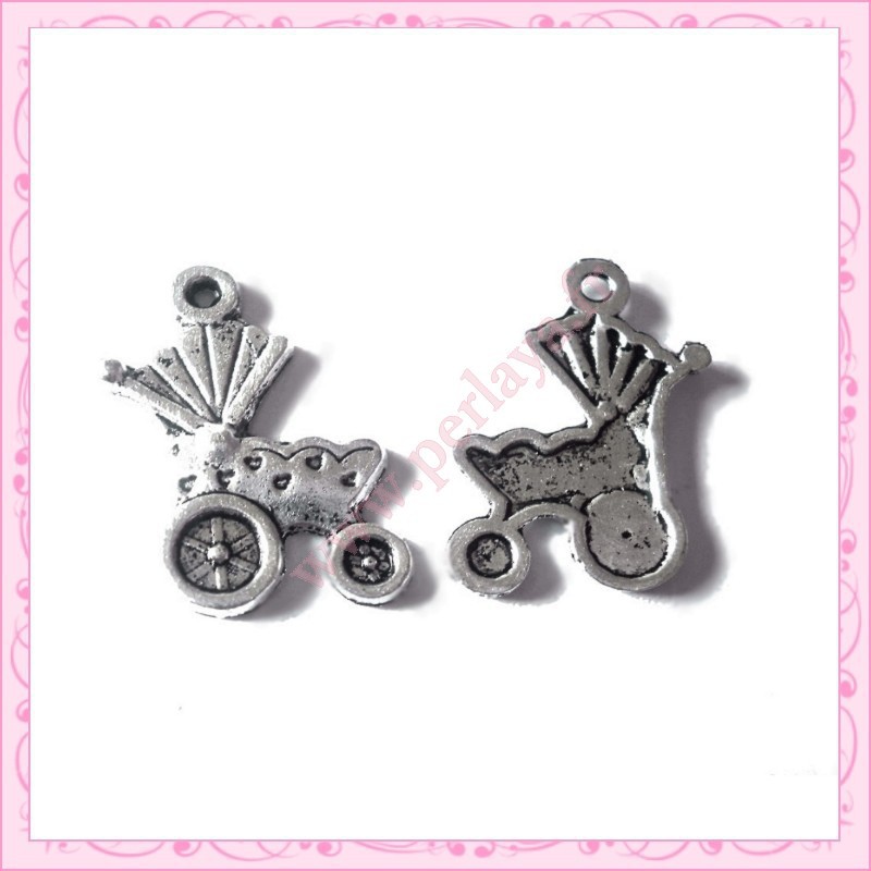 15 breloques poussettes métal argentées 1.9cm
