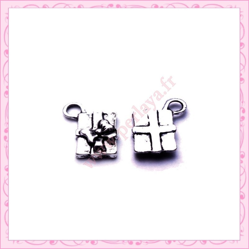 15 petites breloques cadeaux argentées en métal