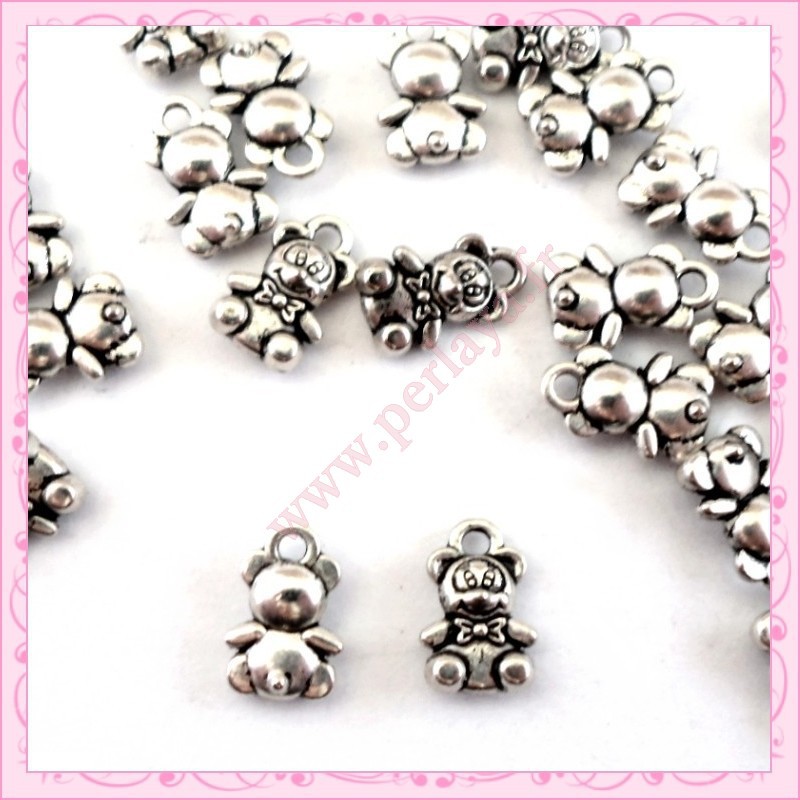 30 breloques ourson-nounours argentées