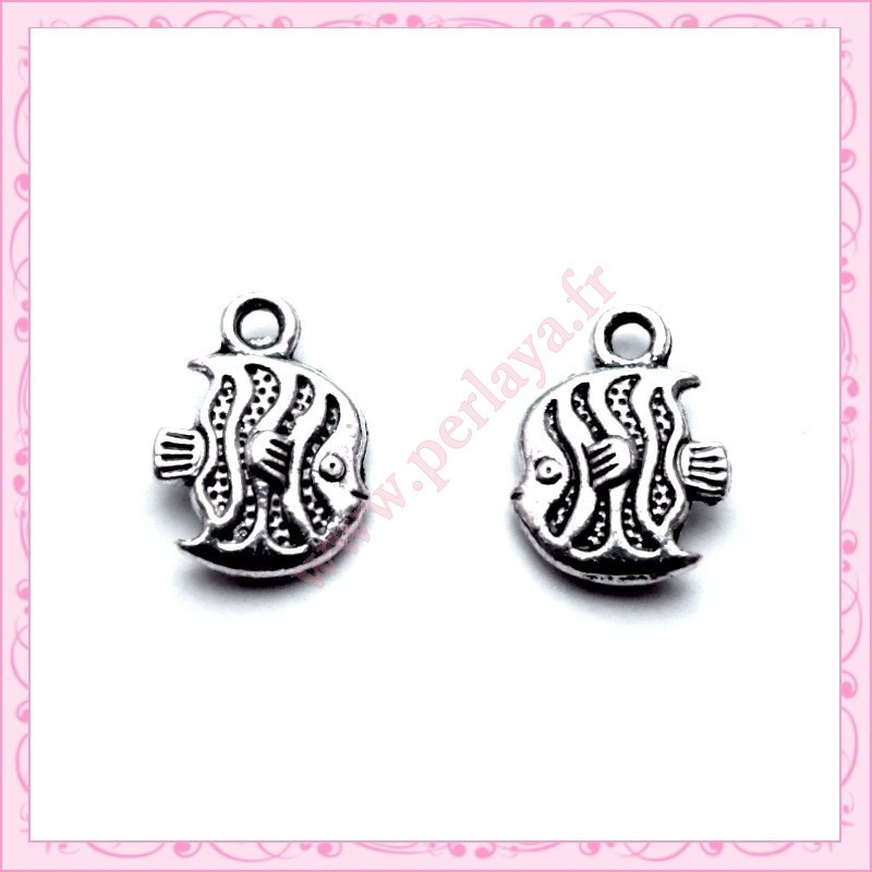 15 breloques poisson en métal argentées