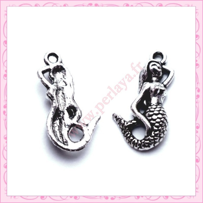 15 breloques sirène en métal argentées 2.5cm
