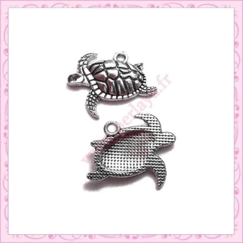 15 breloques tortues argentées en métal