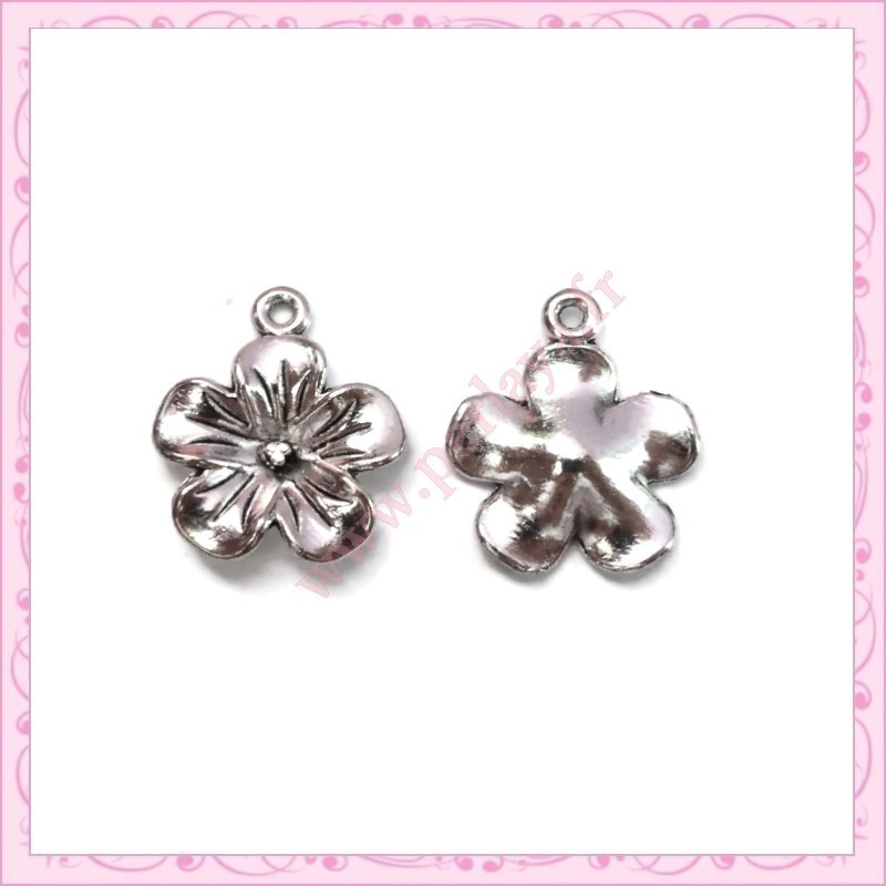 15 breloques fleurs argentées 20mm en métal